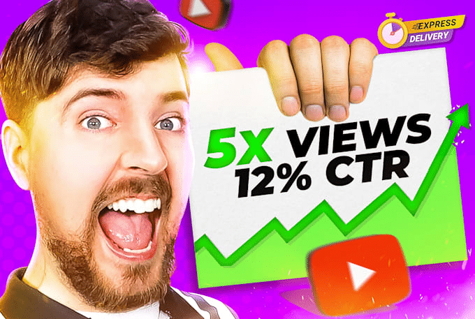 Their designs combine bold titles, expressive faces, and contrasting color schemes to enhance clickability while staying true to your brand identity.